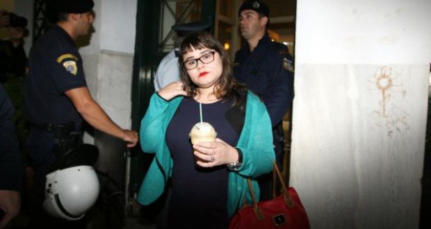 Έχασε την ψυχραιμία της η Ουρανία Μιχαλολιάκου με τους δημοσιογράφους που βρίσκονταν κάτω από το σπίτι της εν αναμονή της απόδοσης των ποινών μετά την απόφαση για τη δίκη της Χρυσής Αυγής.