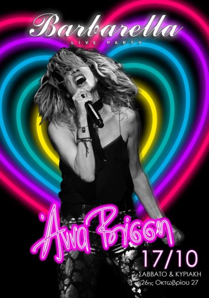 Η Άννα Βίσση και η 13 μελής μπάντα της θα σας υποδέχονται στο “Barbarella live party” από τις 17 Οκτωβρίου και για κάθε Σάββατο και Κυριακή!