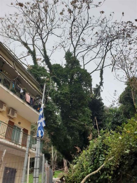 Δυνατοί άνεμοι έσπασαν κλαδιά από δέντρα προκαλώντας προβλήματα στο οδικό δίκτυο, ενώ δέντρο ξεριζώθηκε στην περιοχή Κανόνι, της πόλης, προκαλώντας υλικές ζημιές στα μπαλκόνια των σπιτιών.