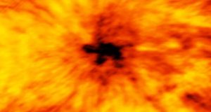 Τις πρώτες θεαματικές εικόνες του Ήλιου έβγαλε το μεγάλο τηλεσκόπιο ALMA του Ευρωπαϊκού Νοτίου Αστεροσκοπείου (ESO) στην έρημο Ατακάμα της Χιλής. Ανάμεσά τους, είναι μια τεράστια και ασυνήθιστου σχήματος ηλιακή κηλίδα, που μοιάζει με χελώνα και έχει μέγεθος περίπου διπλάσιο ...