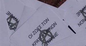 Δέκα άτομα με μοτοσικλέτες πέρασαν στην οδό Αμερικής και πέταξαν τρικάκια με συνθήματα για την αποσυμφόρηση των φυλακών